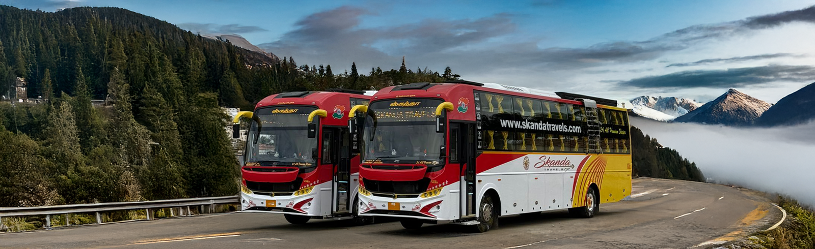 SKANDA TRAVELS is a renowned brand in the bus operating industry. Our vision is to give a new face to the bus industry. Since our inception passenger comfort was our top priority. We have frequently added luxury buses to our huge fleet of buses.